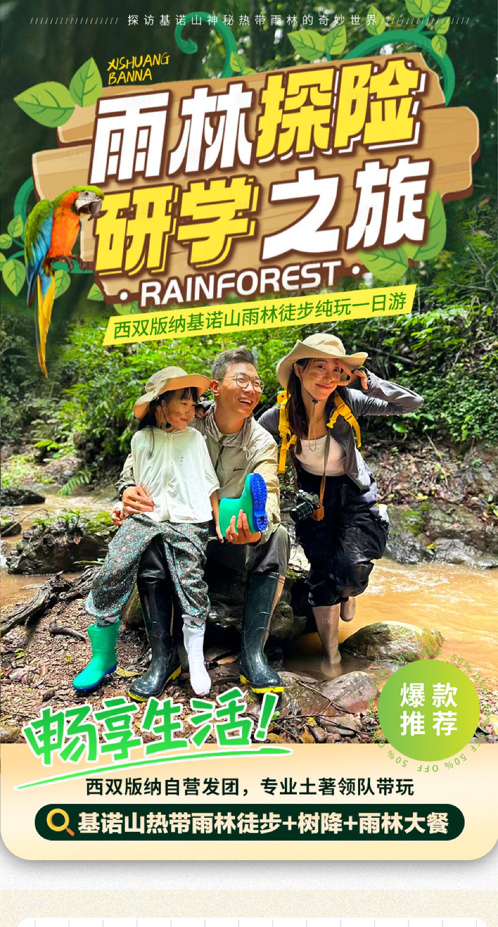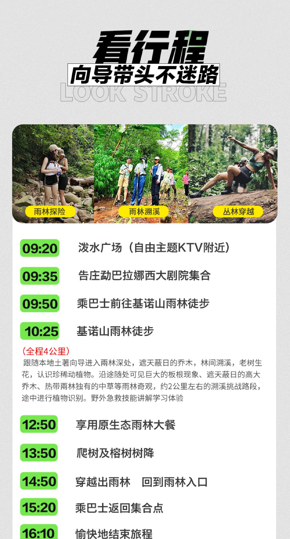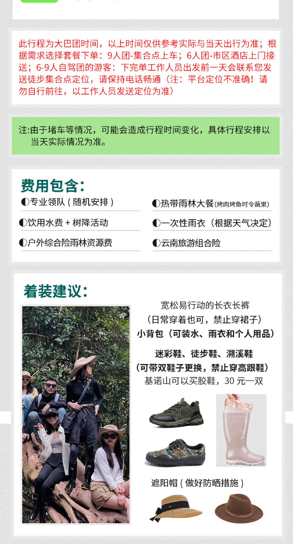基诺山雨林徒步体验项目标准化服务,没有单项目收费,因此因天气,季节,项目维修等因素,有些项目没法参加不做单项退费,请知晓