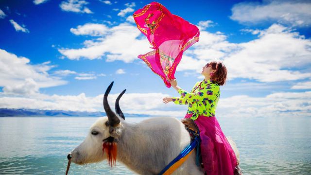 ▲ 美丽的纳木措,穿着鲜艳的衣服。更加衬出人与自然的和谐……