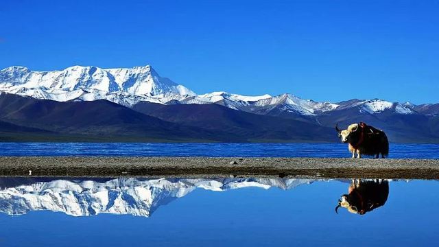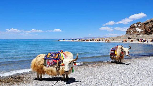 ▲ 牦牛,在湖边自由自在的晒着太阳