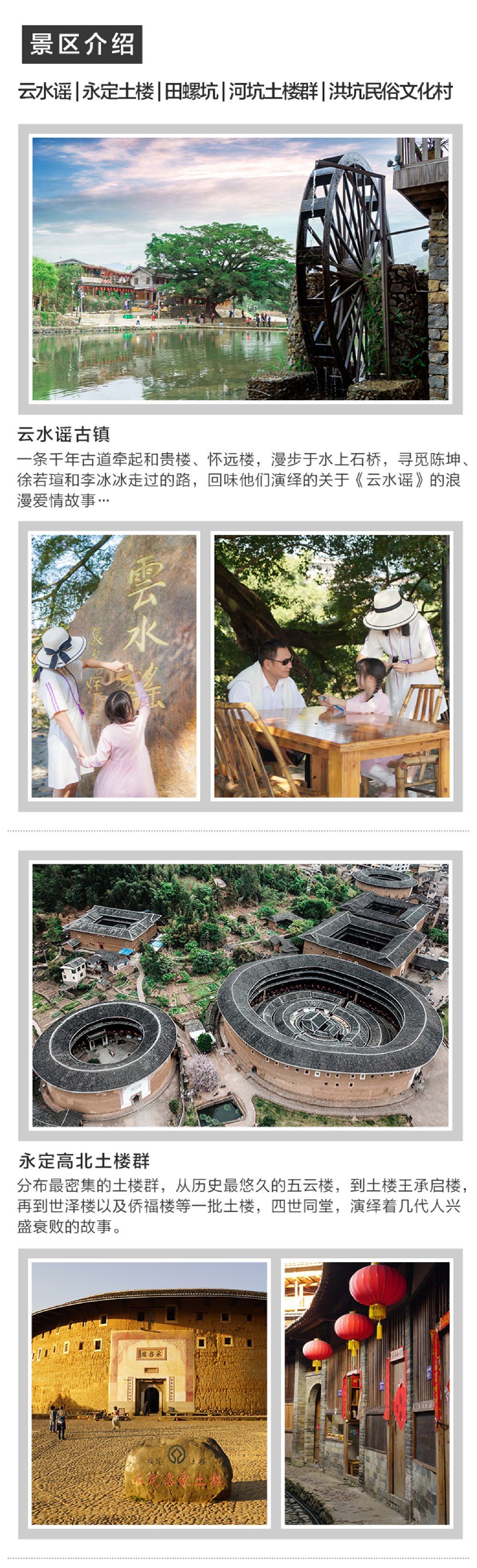 费用说明:打包优惠价不拆分计算,特殊证件需提前告知,云水谣、田螺坑半票退10元/人,免票退20元/人,永定高北半票退5元/人,免票退10元/人
