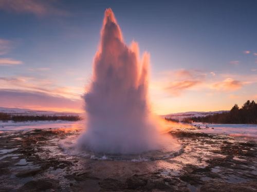 ▲ 安静的时候它像一个晶莹通透的水晶球,约 10 分钟喷发一次,喷发时烟雾缭绕直冲云霄,会为它的雄伟和瑰丽景观所倾倒, 高达 60 多米。