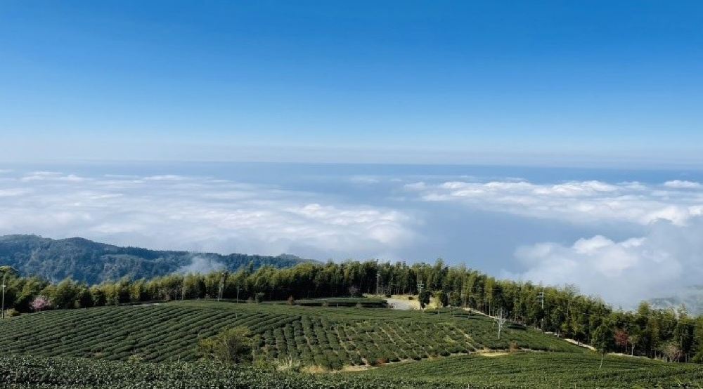 ▲ 三縣市之交的零死角雲海位於雲嘉、南投交界的雲嶺之丘,不僅有藝術雕塑分指三縣,觀景台更能夠將360度零死角,將日出、無敵雲海和茶園山景盡收眼底。近午時雲霧繚繞,彷彿出世脫塵,尤其適合起早的人迎著日出展開行程。雲嶺之丘為跨越雲林縣、嘉義縣、南投縣之地,海拔約1650公尺,觀賞日出、夕陽及雲海的絕佳新視野,時而可看到雲霧裊裊、山嵐搖舞的雲海滾滾而上,而且每個季節的雲海各有不同。山頂上三角點觀日平台的人型雕塑作品,所指示的方向正分別是面向三縣,巧妙地成為雲嘉南跨三縣的特殊地理位置。