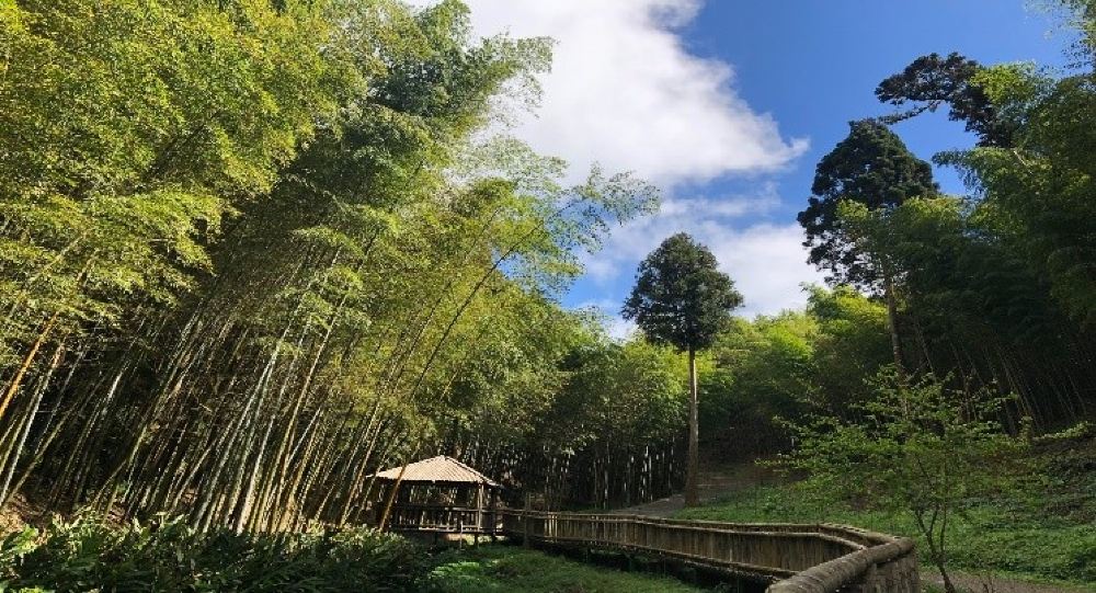 ▲ 五元兩角海拔約1600公尺,四周被綠意盎然孟宗竹林包圍,沿路的涼亭和綠廊皆採用孟宗竹編製成而成,因涼亭頂部上的角面有三角到九角等多座,加起來總共四十二個角,另外還有圓形一座則算為一元,所以加總起來就是五元兩角,也就是五元兩角名稱的由來。宛如台灣版京都嵐山,不僅予人遠離塵囂之恬靜,亦偶有藍腹鷴穿梭其中,恍若仙境。