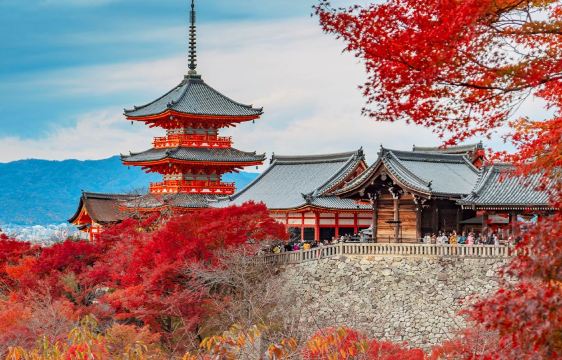 ▲ 清水寺一年四季风景不同。春季时樱花烂漫,是京都的赏樱名所之一,秋季时又化身为赏枫圣地,红枫飒爽,无比壮丽。