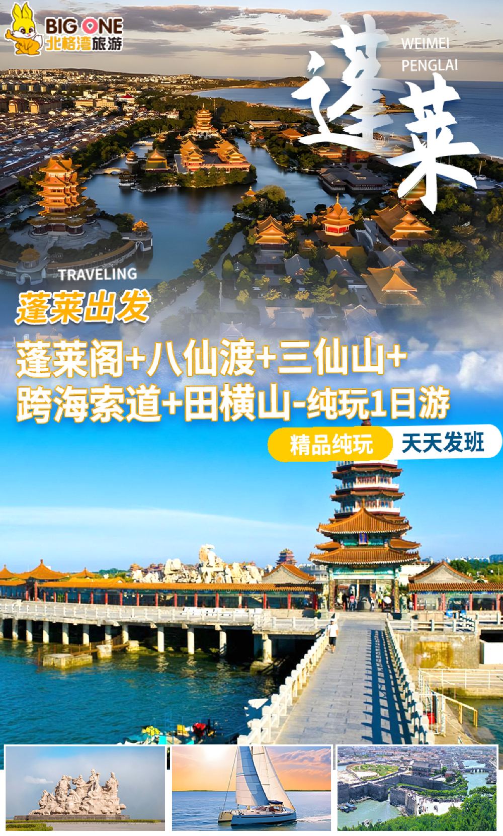 蓬莱阁丨八仙渡丨三仙山丨帆船丨索道丨田横山一日游【亲子甄选】【【安心出游】车内常备自拍杆|晕车药|创可贴|花露水|充电宝等物品;】