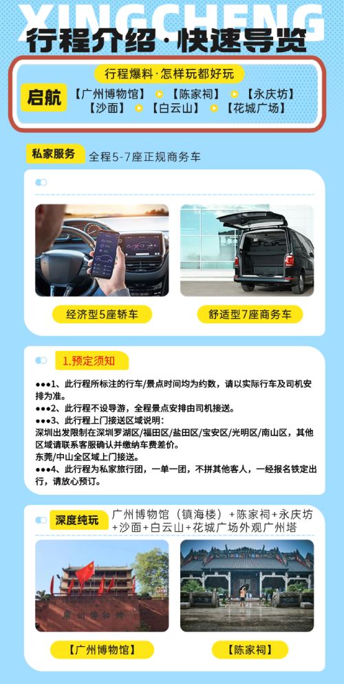 私家团上门接送【广州博物馆或黄埔军校+陈家祠+白云山一日游】【私家旅行:一单一团,不拼客,专属旅行 品质服务:5/7座小车上门接送,专职司机护航】