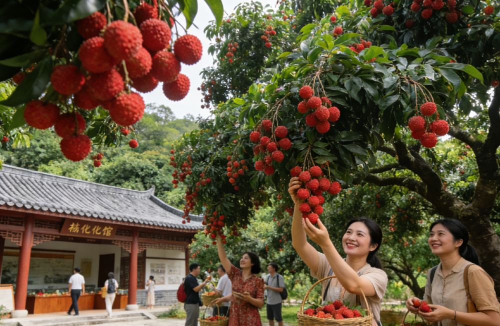 ▲ 从化荔枝文化博览园,是省级现代农业产业园核心区,以 “一库两园三平台” 为核心架构。园内有荔枝产业优质种质资源库,保存着 120 个荔枝品种,还部署了物联网传感器等智慧农业技术,游客可了解荔枝种植的科技奥秘,感受现代农业的魅力。