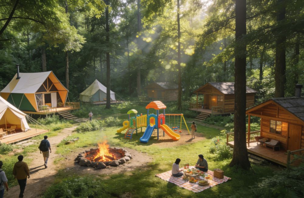 ▲ 北纬 23°8 森林营地,是一个天然大氧吧,有 400 亩的 WOWO 部落,游客可以在这里欣赏稻田风光,还能与萌宠亲密互动。营地的蜗牛探索乐园、极速乐园等,有无动力设施和机动游戏,适合不同年龄段的游客游玩。