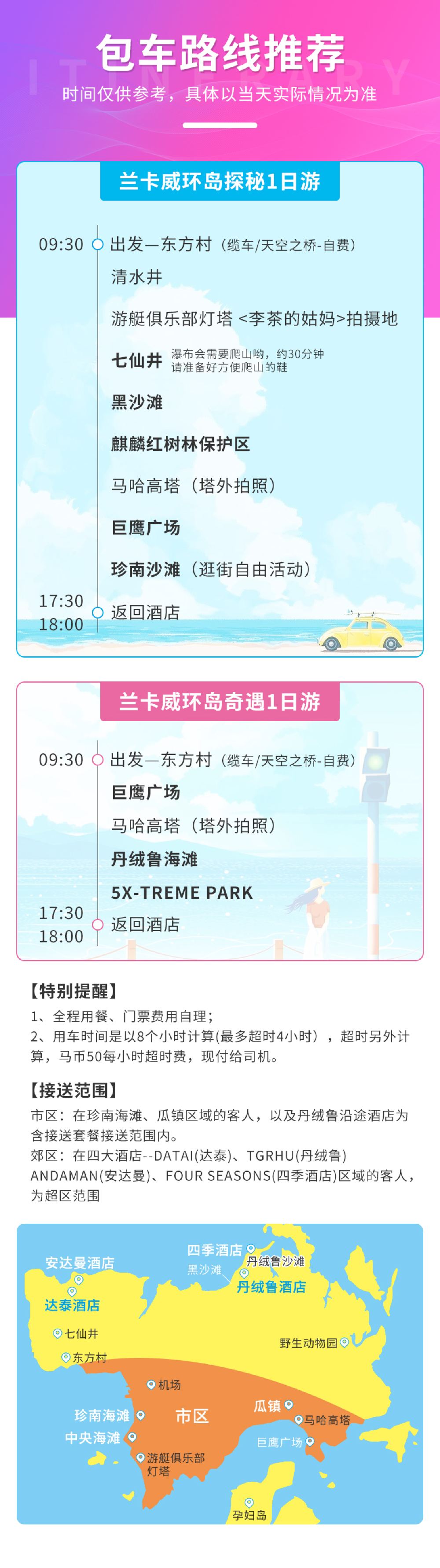 兰卡威包车私人订制马来西亚兰卡威珍南海滩环岛纯玩一日游【【定制路线】悠享海岛风情,体验多种刺激户外活动,专属私密行程自由】