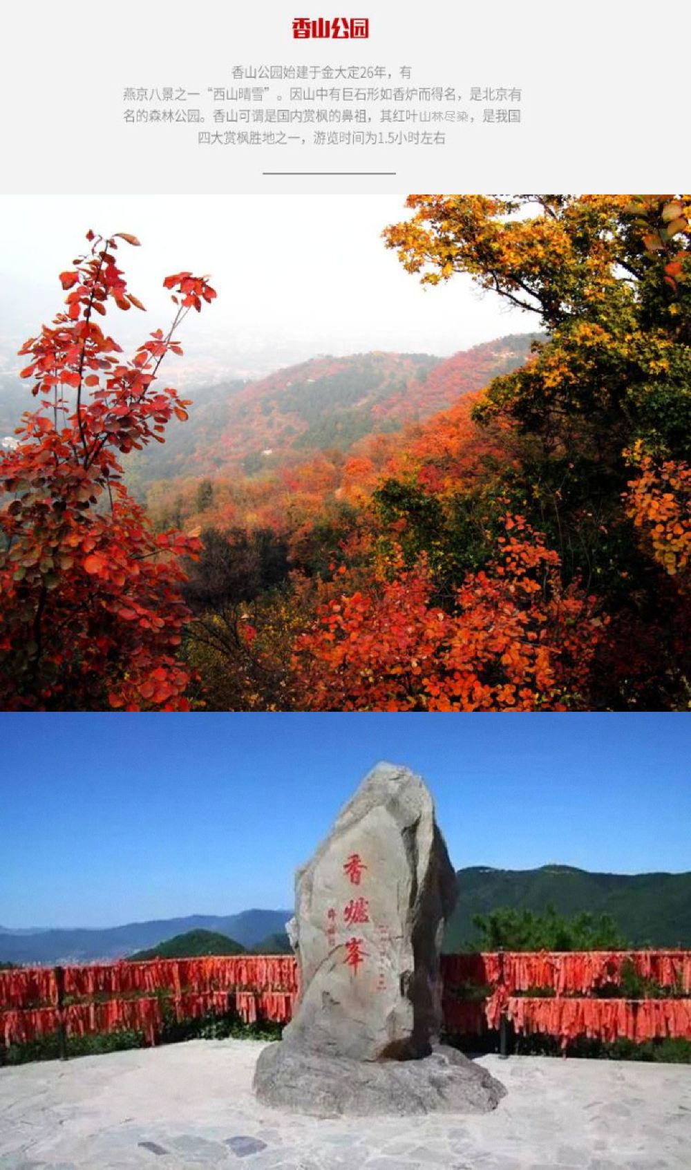 北京香山公园+慕田峪长城包车游【上门接送/可定制导游服务】【北京踏春好风景景区:北京香山,颐和园,北京城区的“绿肺,奥森;】
