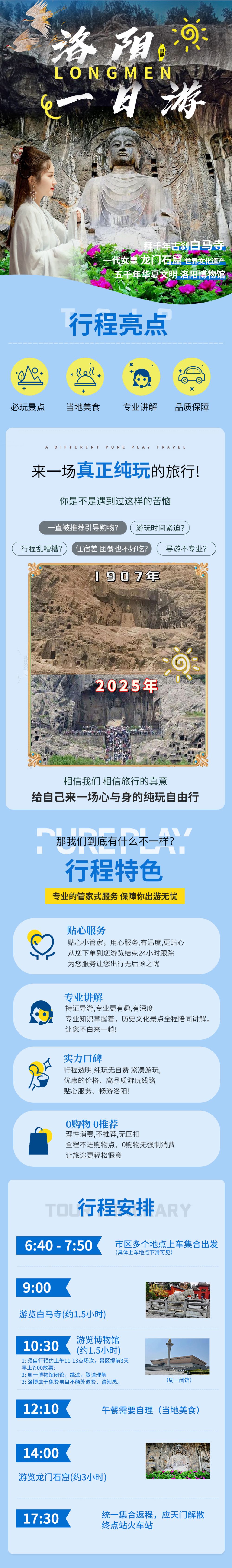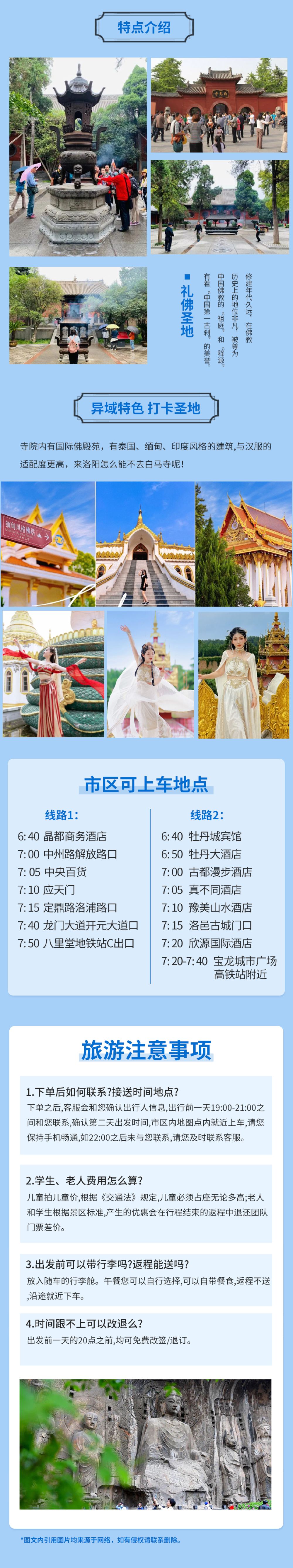 白马寺+洛阳博物馆+龙门石窟一日游【纯玩含讲解◆可升级小团】【【轻松亲子游】行程关联地图范围内酒店上门接,返程沿途顺路均可就近下车,也可在应天门或洛阳火车站散团。】