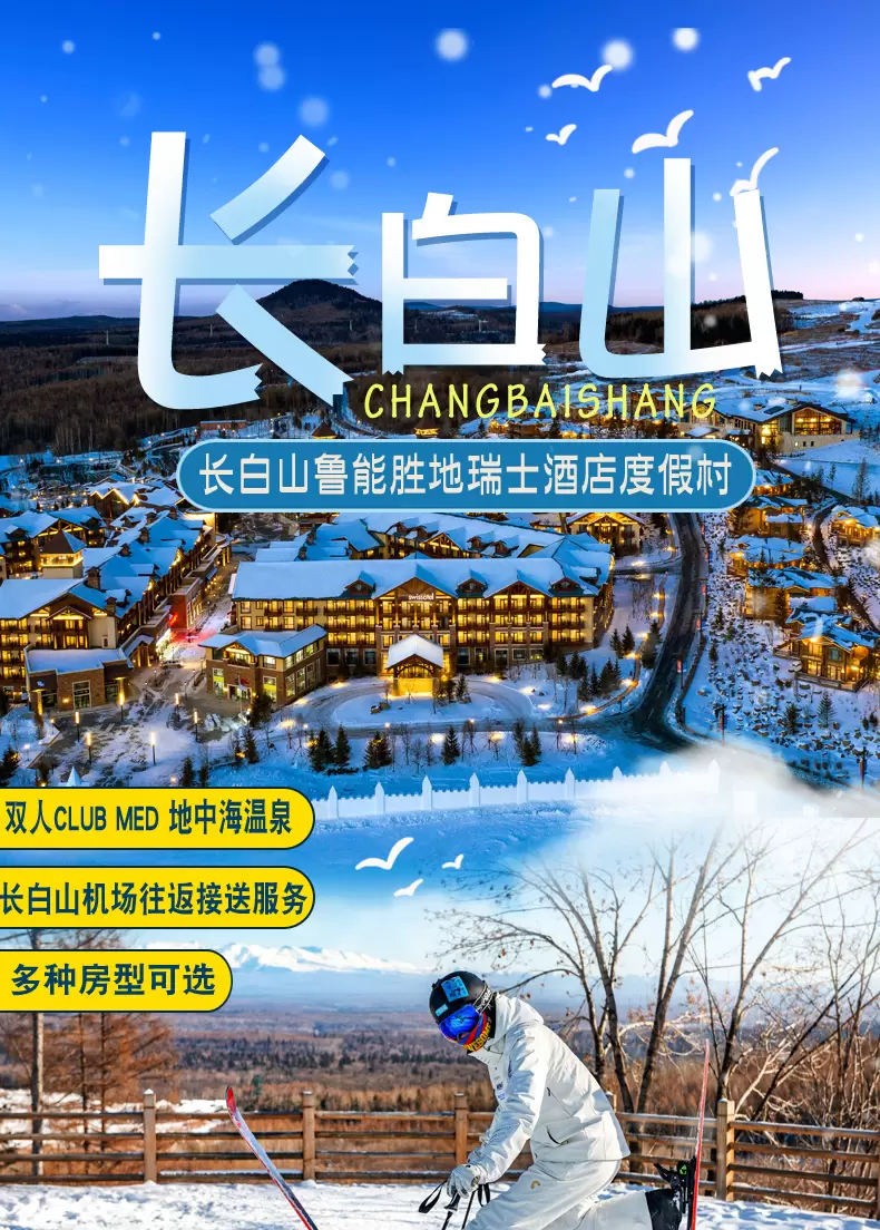 【滑雪预售】长白山华美胜地滑雪+地中海温泉丨住松果里丨郝力克酒店丨原乡酒店丨鲁能胜地丨美景阁酒店任选