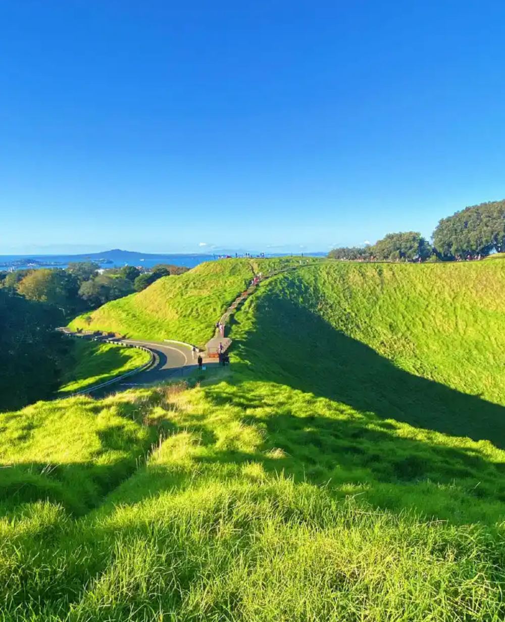 是一座休眠的火山,拥有一个深50米的倒圆锥形火山口,绿草如茵,十分奇特。游客可沿着火山口边缘步行,在此可以一次性将奥克兰地标尽收眼底:天空塔、海港大桥、朗伊托托火山岛以及东西两岸的塔斯曼海与太平洋。是拍摄城市全景照片的很好地点。