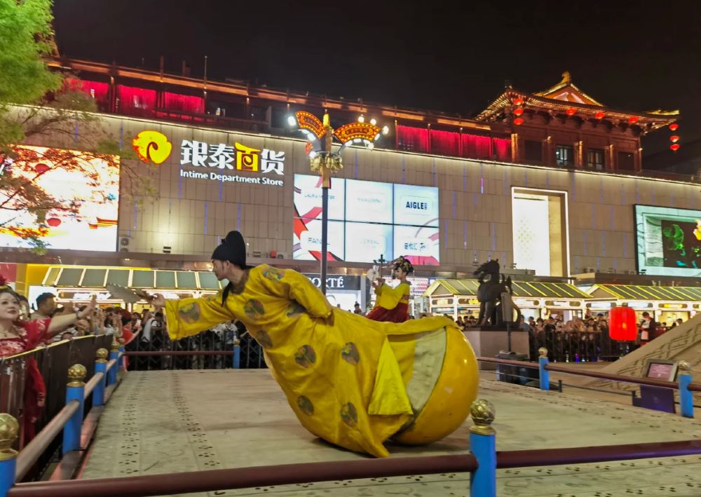 随后,您可以沉浸在充满活力的“大唐永明城”的氛围中。这座集文化娱乐于一体的综合体完美融合了历史与现代。漫步城中,您将邂逅复原的唐代建筑、熙熙攘攘的市场和精彩纷呈的街头表演。您可以探索各种景点,沿途还可以光顾传统的茶馆或纪念品商店。这座城市旨在带您穿越时空,体验唐代丰富的文化遗产。