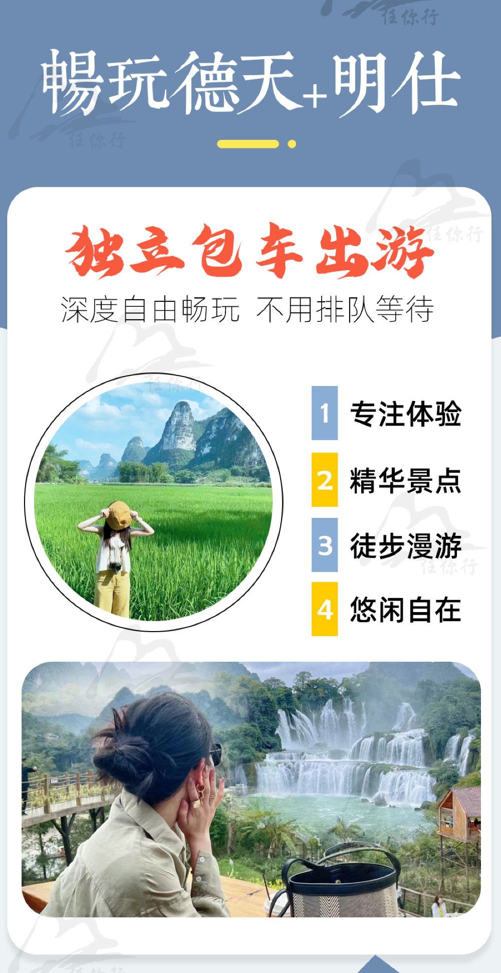 崇左+德天瀑布+明仕田园一日游【1单1团独立用车 】【崇左市区内免费上门接送 出行无忧 专业司机向导 服务更用心】