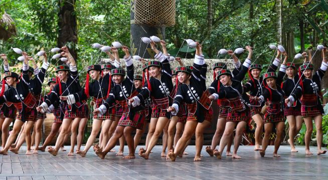 半山以下是黎寨,半山以上是苗寨,槟榔谷是一个展示海南岛黎苗文化的特色景区。让你在一天内感受充满地方特色的历史和文化。在这里多待几分钟,感受到海南苗族的狩猎文化、苗药文化及人与自然生态和谐的画面。感受黎族的织布技艺、纹面文化等。还有惊险刺激的上刀山、下火海等特色演出。让你不虚此行。