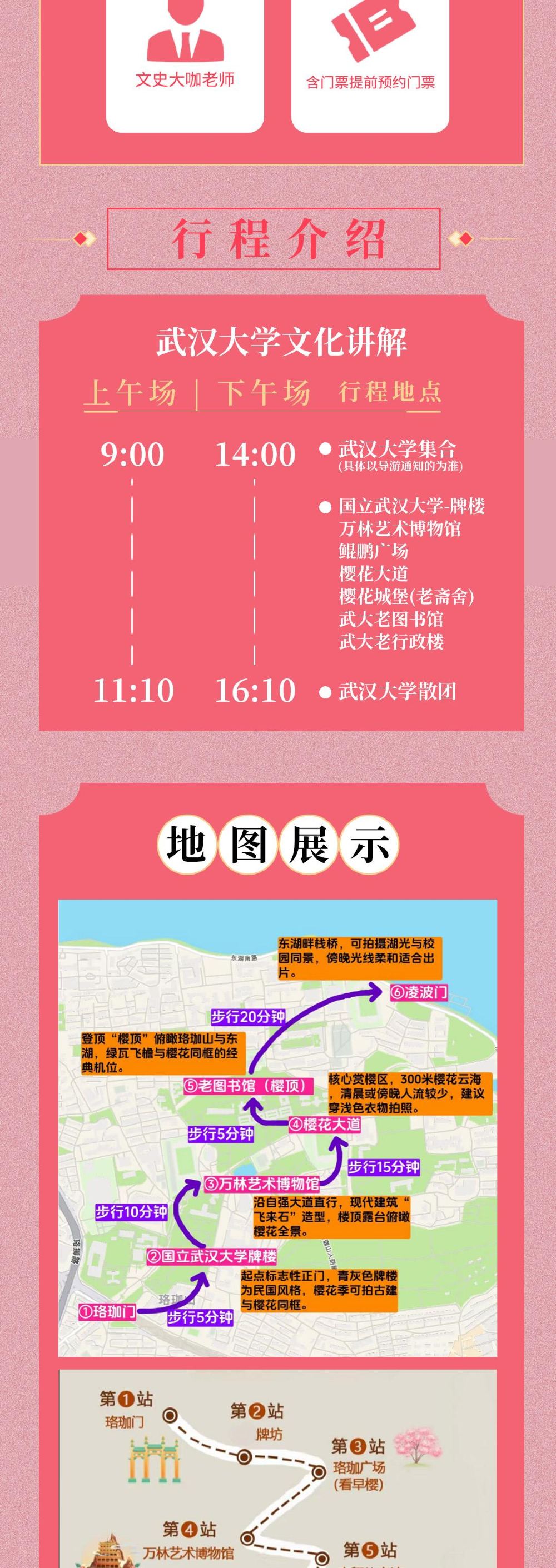 特别说明:樱花季一般为3月8日至4月1日,此段时间我们会帮您进行赏樱预约。也请您下单后配合我司提前3天将所有人员的身份信息提供给我们进行预约。