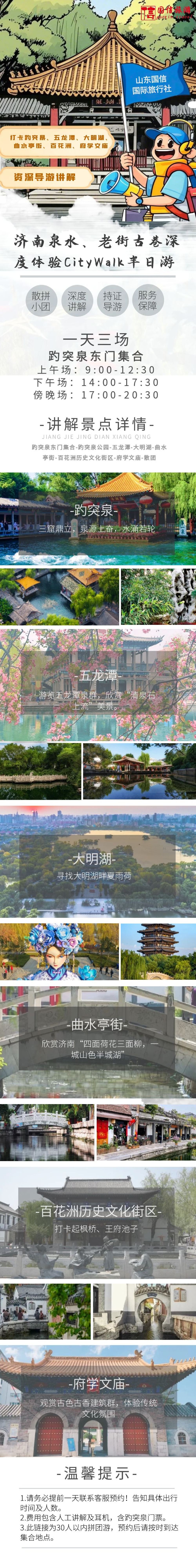 济南趵突泉+五龙潭+大明湖乘游船+曲水亭街+百花洲拼团一日游【散拼团:30人内小团】