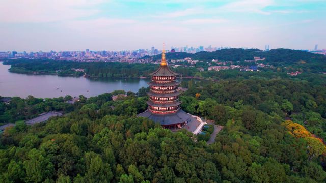 ▲ 【雷峰塔】又名“黄妃塔”,位于西湖南岸夕照山的雷峰上。很多人的“雷峰塔情结”源于白娘子传说,尽管旧塔在1924年就倒掉了,如今这座是在原塔基上新修的,里面有电梯和空调,但并不妨碍你来此寻访白娘子的踪迹。