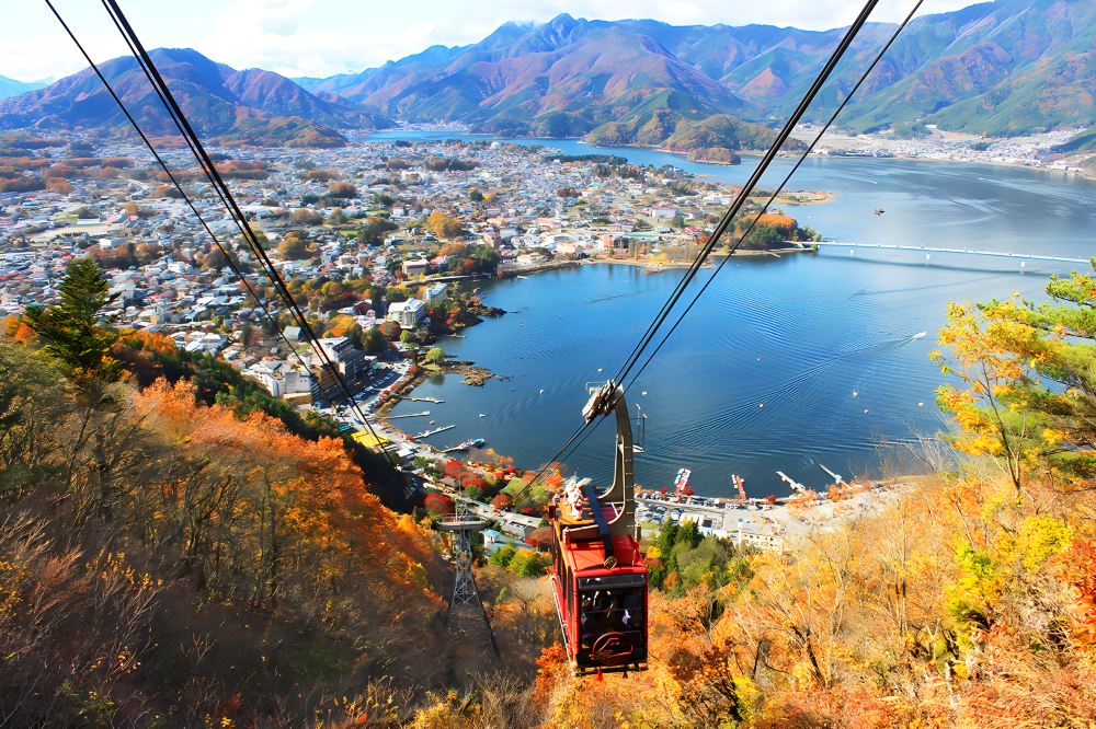 ▲ 【河口湖全景缆车】连接到海拔1075米山顶的缆车,抵达山顶3分钟,从山顶的观景台除了可俯视河口湖之外,还可欣赏富士山的美好景色。赠送缆车票。
