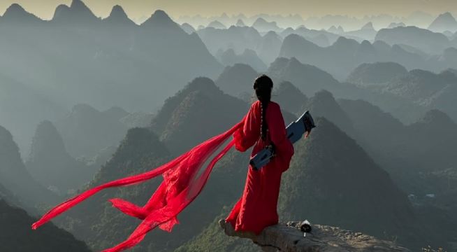 ▲ 这里是阳朔相公山,语文课本封面上的仙境。站在相公山观景平台,方圆数十里峰峦叠嶂,平地拔逵,攒集如林,奔来眼底,一览无余 山风猎猎,鼓荡胸襟,吹着山风,顿生“山高我为峰”的摘星豪情;俨然有了“会当凌绝顶,一览众山小”的博大胸怀。
