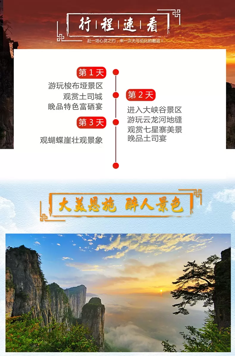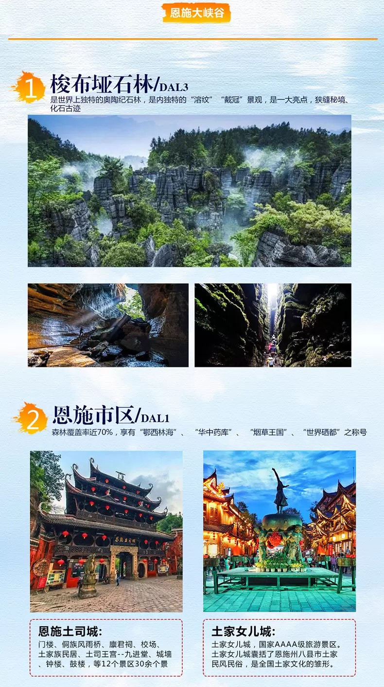 恩施大峡谷+恩施大清江景区+梭布垭石林+恩施土司城三日游【性价比之选+含5正餐+纯玩经典之旅】