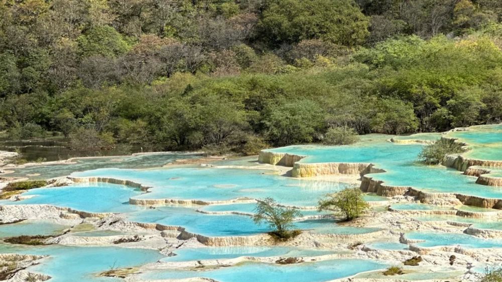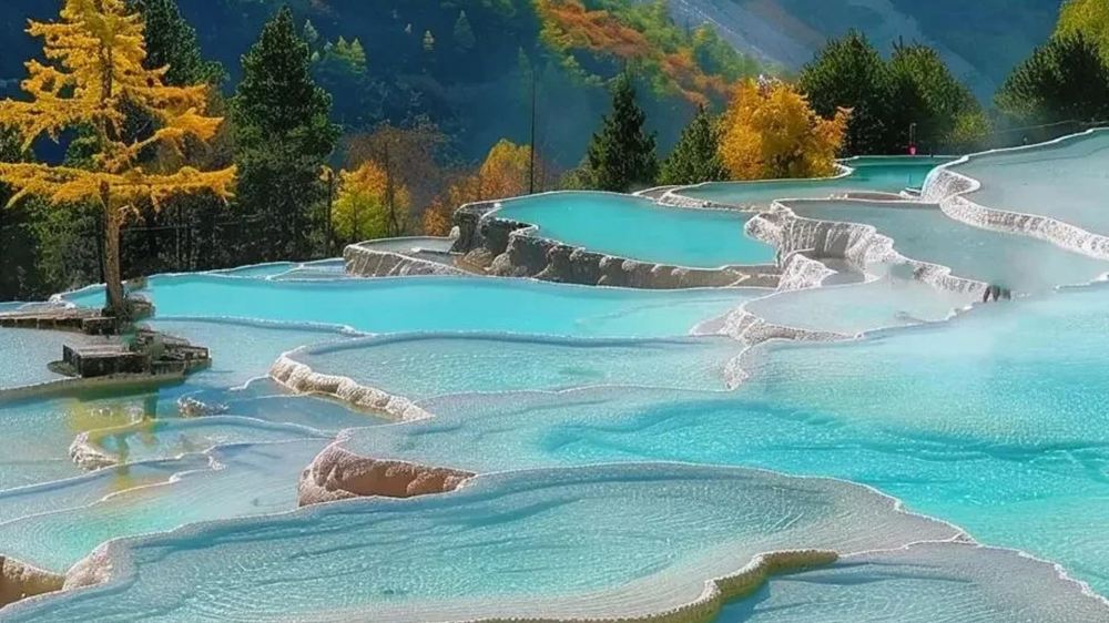 ▲ 中国鲜活的地质画布 黄龙,位于四川,被联合国教科文组织列为世界遗产,以其梦幻般的石灰华梯田而令人着迷。数千个富含矿物质的池水倾泻而下,如同液态宝石——绿松石、翡翠和黄金——历经千年雕琢而成。阳光照射在金色钙质沉积物上形成的“黄龙”奇观,蜿蜒穿梭于山谷之间,将神话传说与自然艺术巧妙融合。
