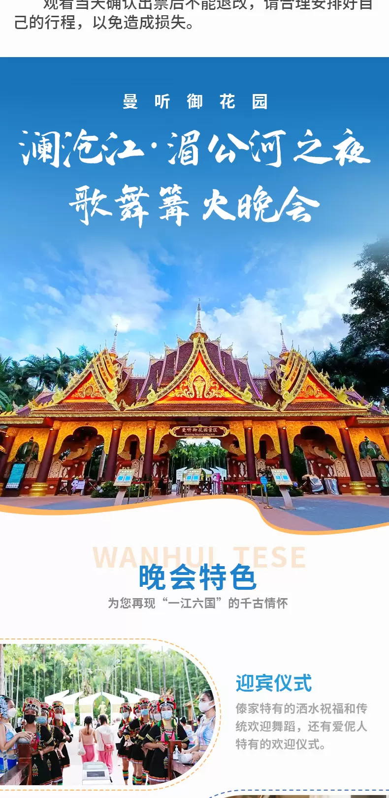 西双版纳曼听御花园+“澜沧江·湄公河之夜”歌舞篝火晚会一日游【篝火晚会(室内表演+晚餐+放水灯+跳篝火)】
