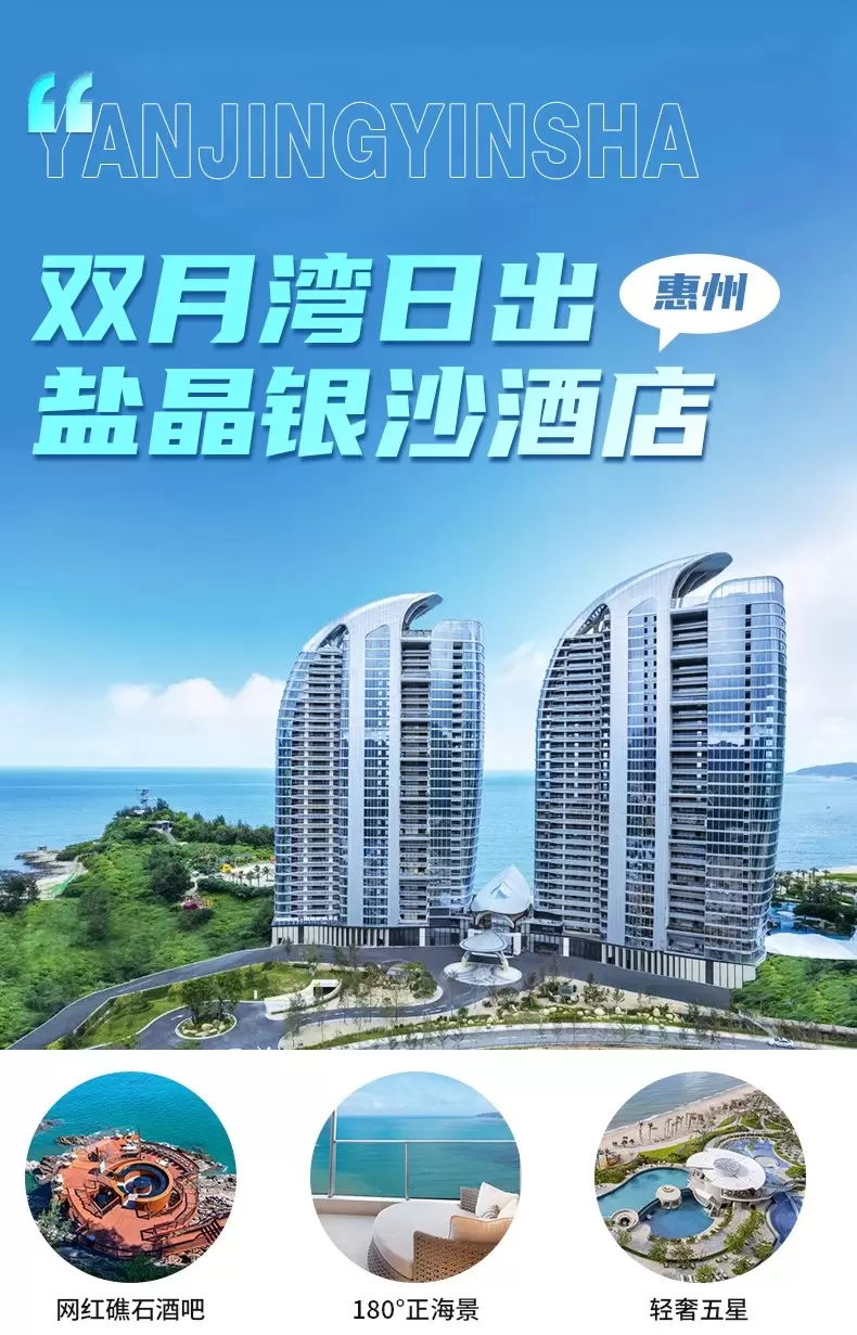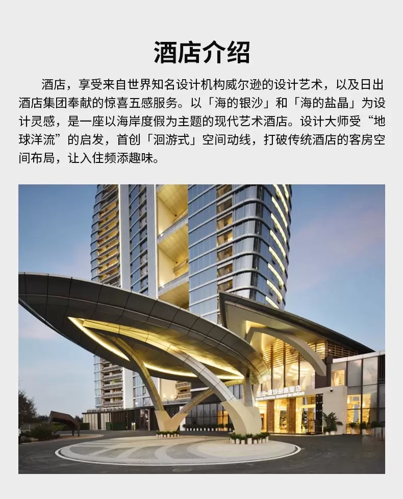 双月湾日出盐晶酒店·2大2小自助早餐+情人湾风景区礁石酒吧&观光塔+七星伴月海泉汤浴+网红泳池+旅拍