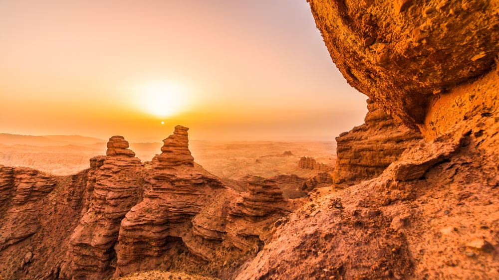 张掖平山湖大峡谷位于张掖市甘州区平山湖蒙古族乡,距离市区约56公里。这里是一座无水大峡谷,被《中国地理杂志》誉为“比肩张家界”“媲美“克罗拉多大峡谷”。峡谷的地质构造属于红层地貌,岩石层富含红色氧化铁,呈现出丹红色和红褐色。亿万年的风蚀水刻,将赭红色的山体雕琢成峰林、石柱、峡谷交织的奇幻画卷,仿佛置身外星秘境。