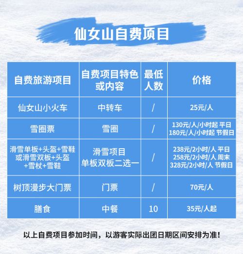 5、仙女山滑雪场内的滑雪项目为客人自愿参加消费,您可根据自身情况选择。如不参加滑雪项目,可以在滑雪场附近玩雪、赏雪。