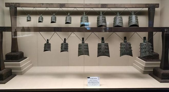 ▲ 晋侯稣钟(西周) 礼乐实证:16件编钟刻355字长篇铭文,记录周厉王亲征战役,因铭文为凿刻(非范铸)曾被疑为赝品,后经考古发掘证实。