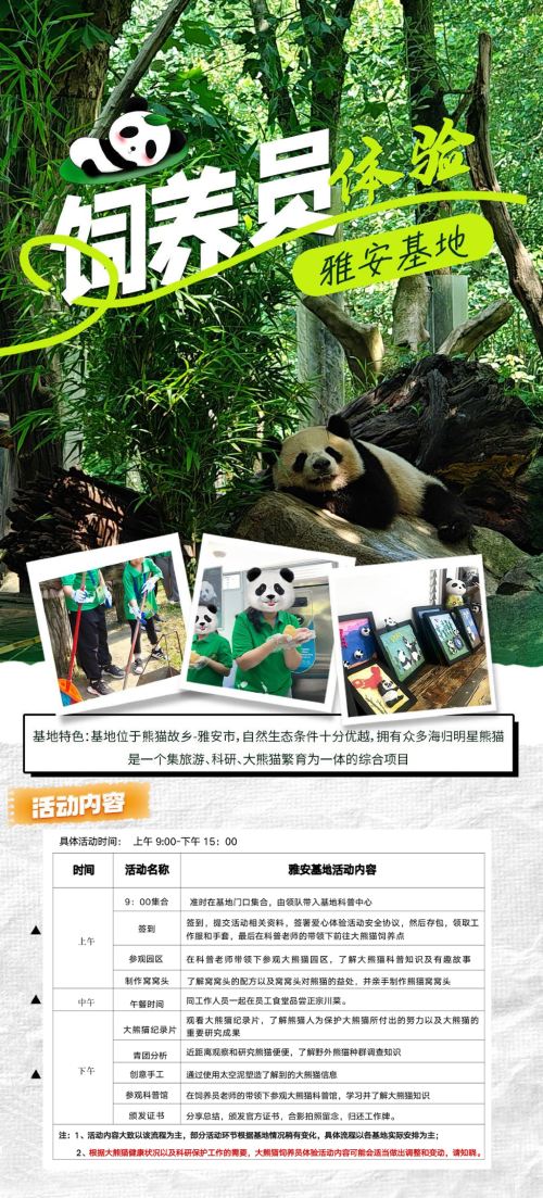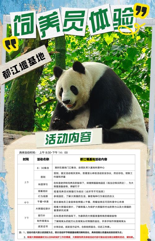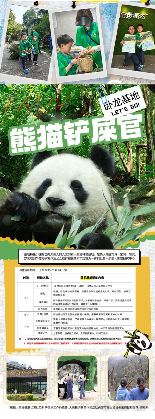 熊猫义工亲子一日游 【制作窝窝头·体验铲屎官·三基地可选】【[饲育体验] 和国宝深度接触,全面了解萌萌的大熊猫,了解和参与大熊猫培育、保护工作;】