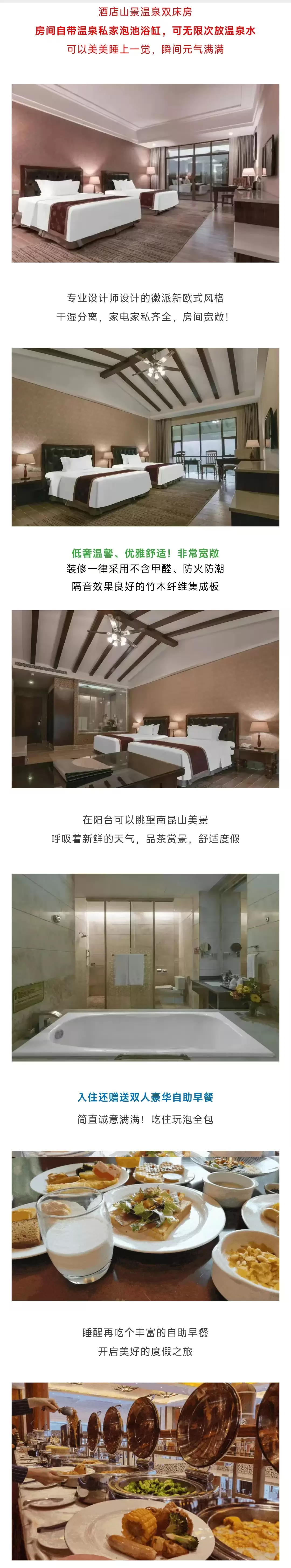 【享大芹温泉乐园】龙门南昆山云顶温泉度假村住1晚+2人大芹温泉乐园+无限次温泉+自助早餐+玛雅水寨+可加购晚餐