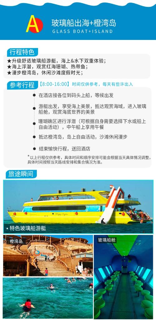 埃及红海出海一日游 玻璃船出海浮潜游艇玻璃船沙滩岛屿珊瑚礁【品质出游】