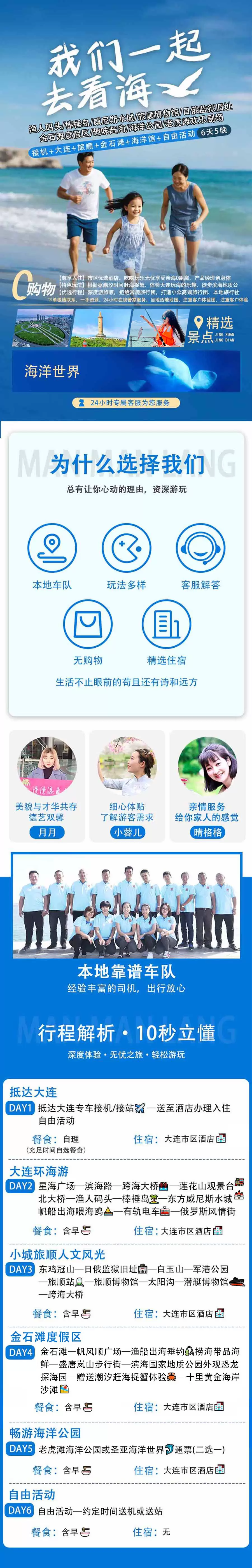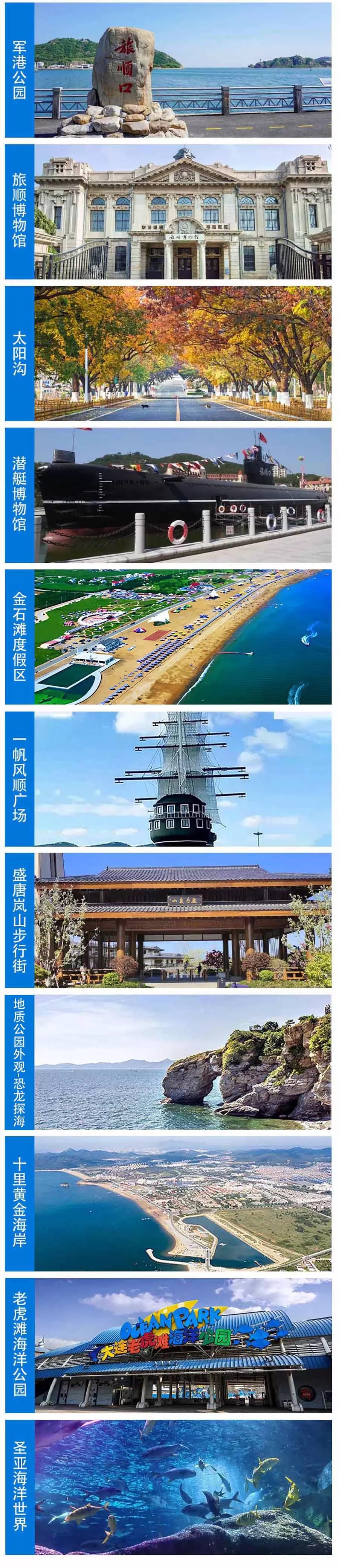 大连棒棰岛+东鸡冠山+金石滩度假区+老虎滩海洋公园六日游【游大连看|坐帆船出海|与小海豚大白鲸互动|一家一车】