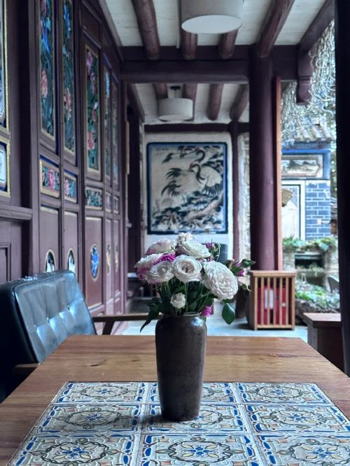 ▲ 不供香火,只以鲜花敬佛。 苍山松影间,青苔爬上石阶,绣球与多肉在经声中疯长。 檐角铜铃轻晃,一钵素斋,半日清坐,心似琉璃净无尘。
