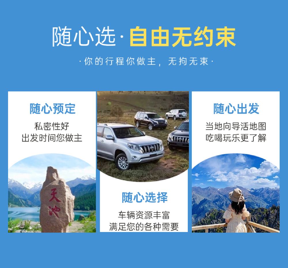 【费用说明】包含:乌市-天池往返包车费、司机服务、乌市区内接送服务。费用是按照一辆车来算的,下单时需要几辆车选几辆即可。5座坐4人,7座坐6人。