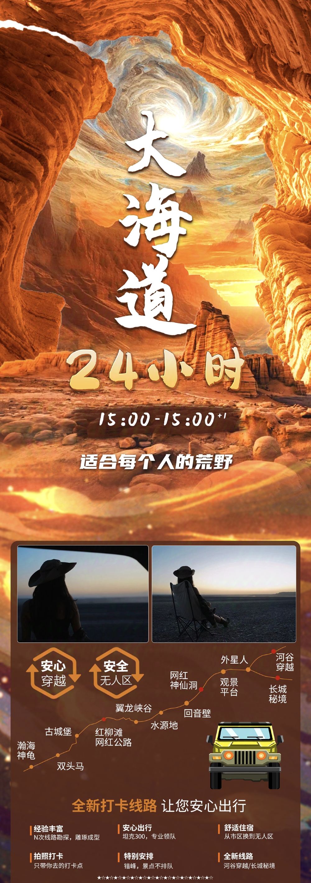 大海道一日游【可选旅拍套餐|1人起发|4人小团|硬派四驱】【【高性价比】【常规团】-【穿越团】-【星空团】,打卡魔鬼城+核心区网红景点“神仙洞”】
