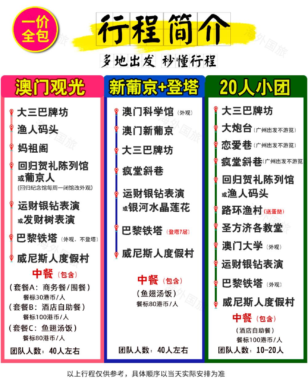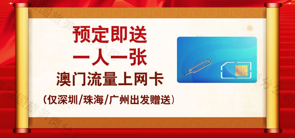 澳门一日游 报名送1张上网卡,3岁及以下无赠送,