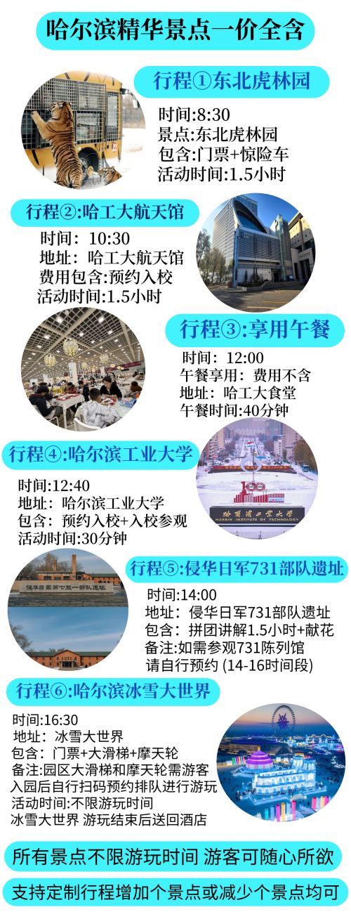 冰雪大世界+东北虎林园+731遗址+哈工大航天馆【私家团】【私家独立出行 上门接送 一单一团 无购物·无自费 深度纯玩 一家人独立专人专车 尽享品质服务】