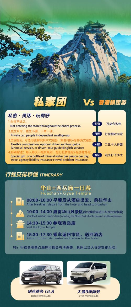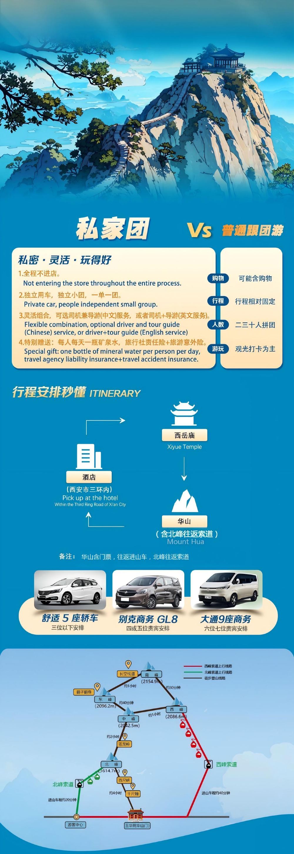 10:00-14:00 Visit Huashan Scenic Area from 00:00 to 14:00 (including shuttle bus and cableway to and from Beifeng).