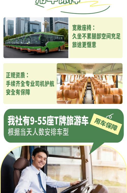 1,常规旅游车或2+1头等舱空调旅游大巴当日出行人数少于10人无导游,由司机负责接待安排,但不进景区。