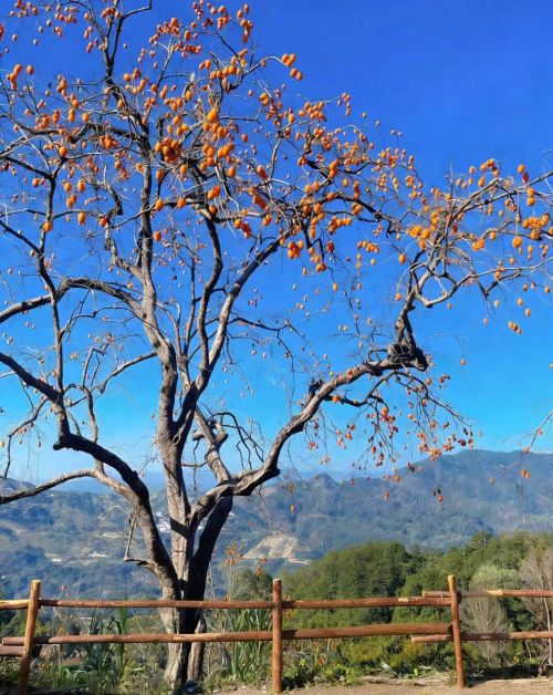 ▲ 东炉村,拥有3800多棵柿子树,其中树龄长的已达三四百年。这里的柿子形状独特,为椭圆形,表皮厚实、果肉Q弹少核。村口有仿古牌楼,气势不凡。村里还有多个观景平台,如山顶平台设有巨大相框作为摄影道具,可俯瞰整个梯田景色;银杏树旁的梯田里,也有树形漂亮的柿子树,拍照极为出片。