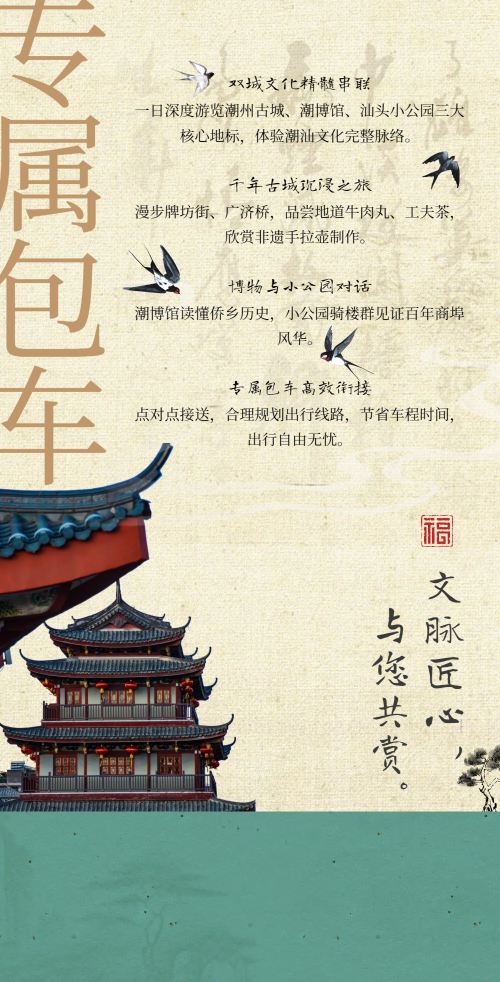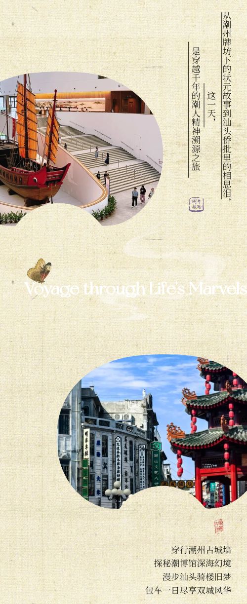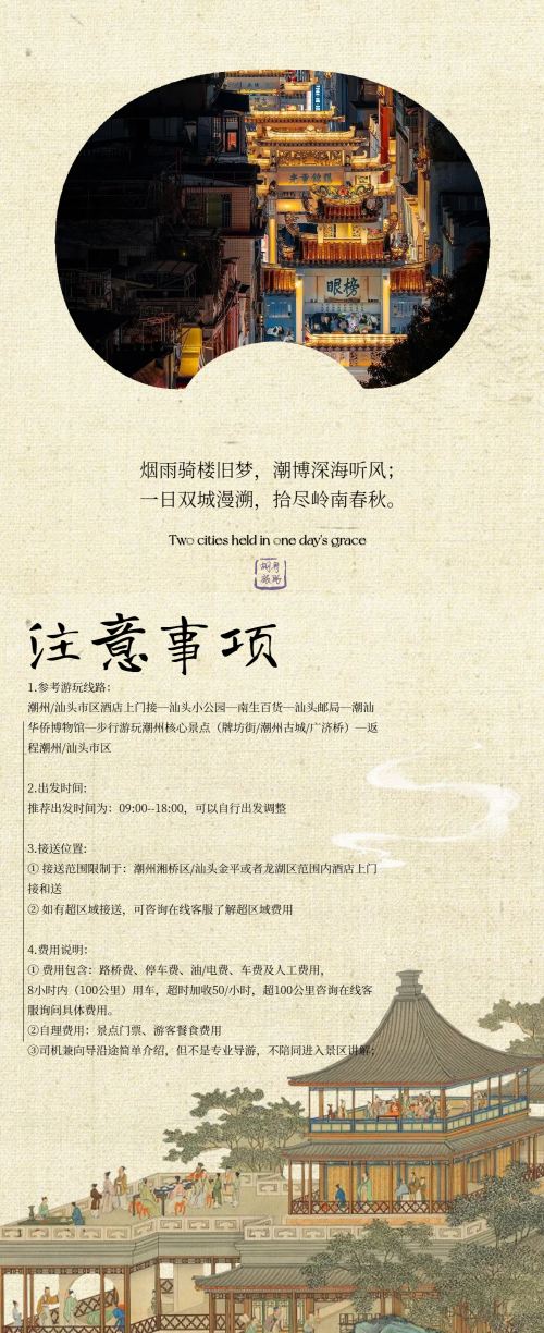潮汕包车一日游双城10小时体验|快速打卡潮州古城+汕头小公园【一日游双城,潮风古韵两相宜。两地灵活出发,返程均可异地送达!】