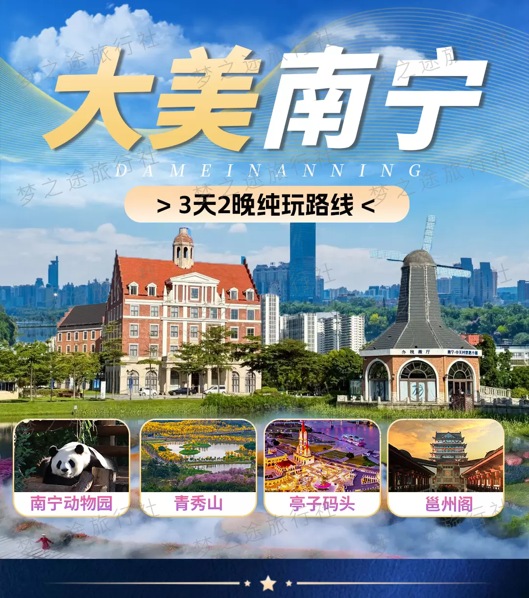 南宁广西民族博物馆+南宁青秀山+南宁南宁动物园+南宁南宁亭子码头+南宁南湖公园三日游