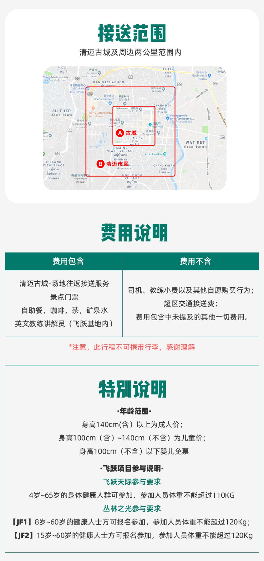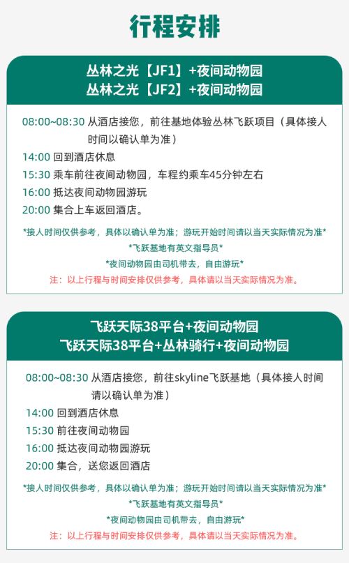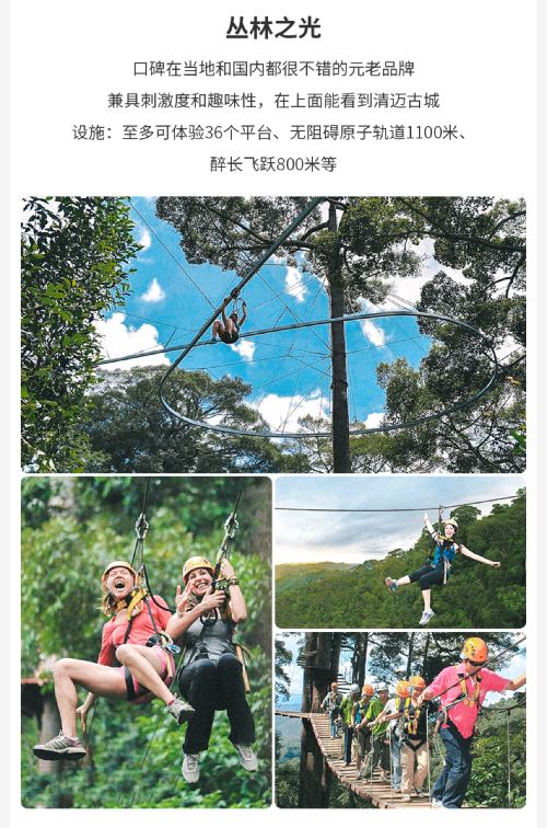 清迈JF丛林之光飞跃+野生夜间动物园一日游 含午餐【专业中英文教练指导和进口的飞跃设备】
