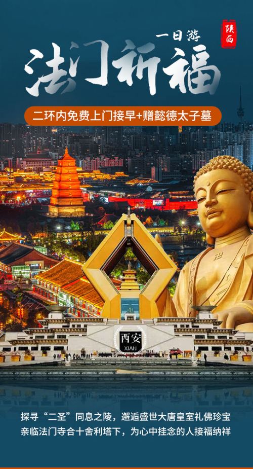 法门寺+乾陵+茂陵博物馆一日游【赠懿德太子墓| 特色午餐】【[出行无忧]:二环内上门接早+赠双景区耳麦+可选素斋午餐+纯玩无购物、行程透明!】