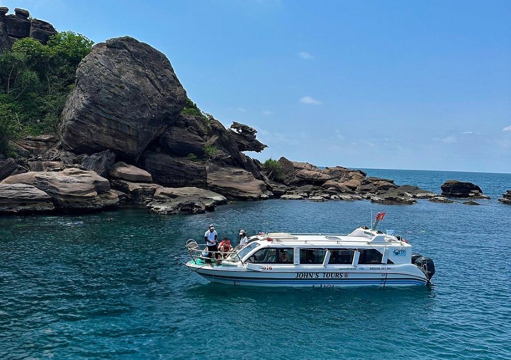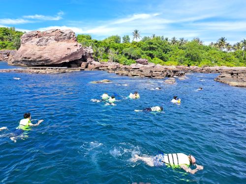 富国岛 - 豪华快艇之旅(最多15人)【停靠Xuong Island、Buom Island后,快艇将在甘吉岛抛锚,这里是观赏珊瑚和鱼群聚集的理想地点。 抵达最后一站梅茹庄岛后,将在岛上享用午餐,尽情品尝岛上美味的海鲜大餐。 探索泻湖,漫步海滩,畅游水中,尽情放松。】