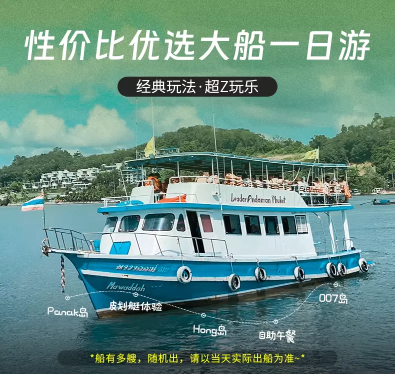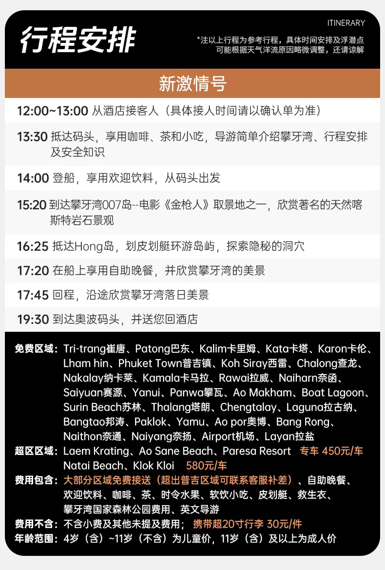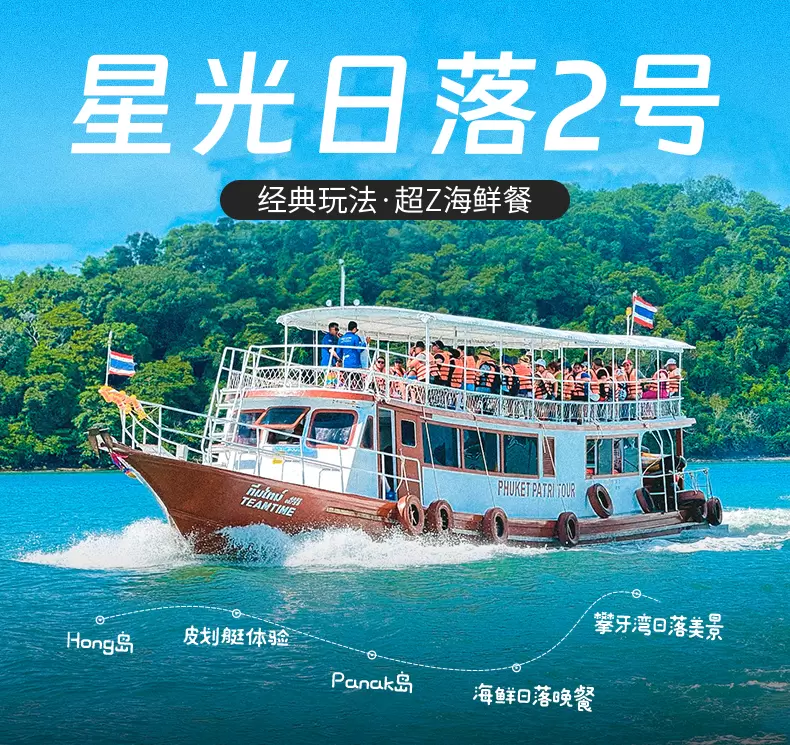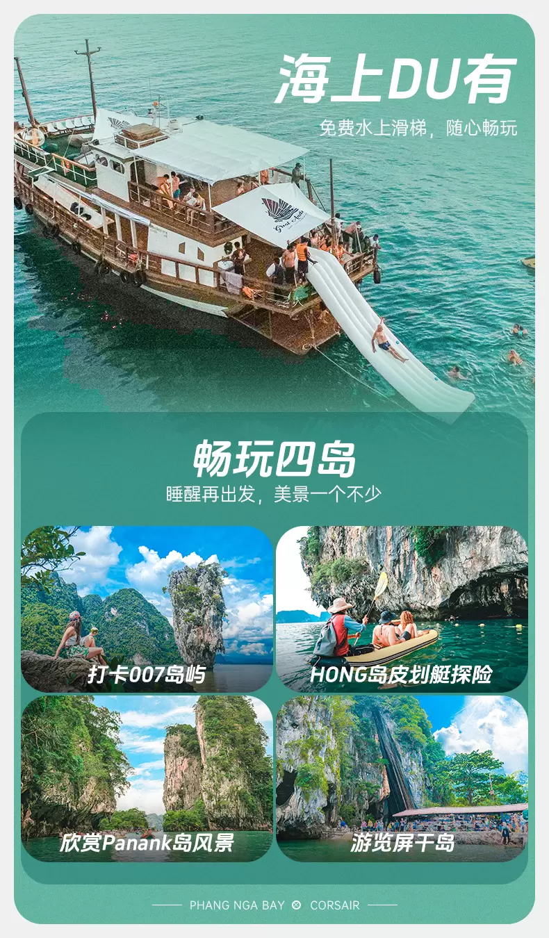 普吉岛攀牙湾国家公园+007岛+宏岛一日游【星光之旅激情号航海号海盗船滑梯皮划艇可选】